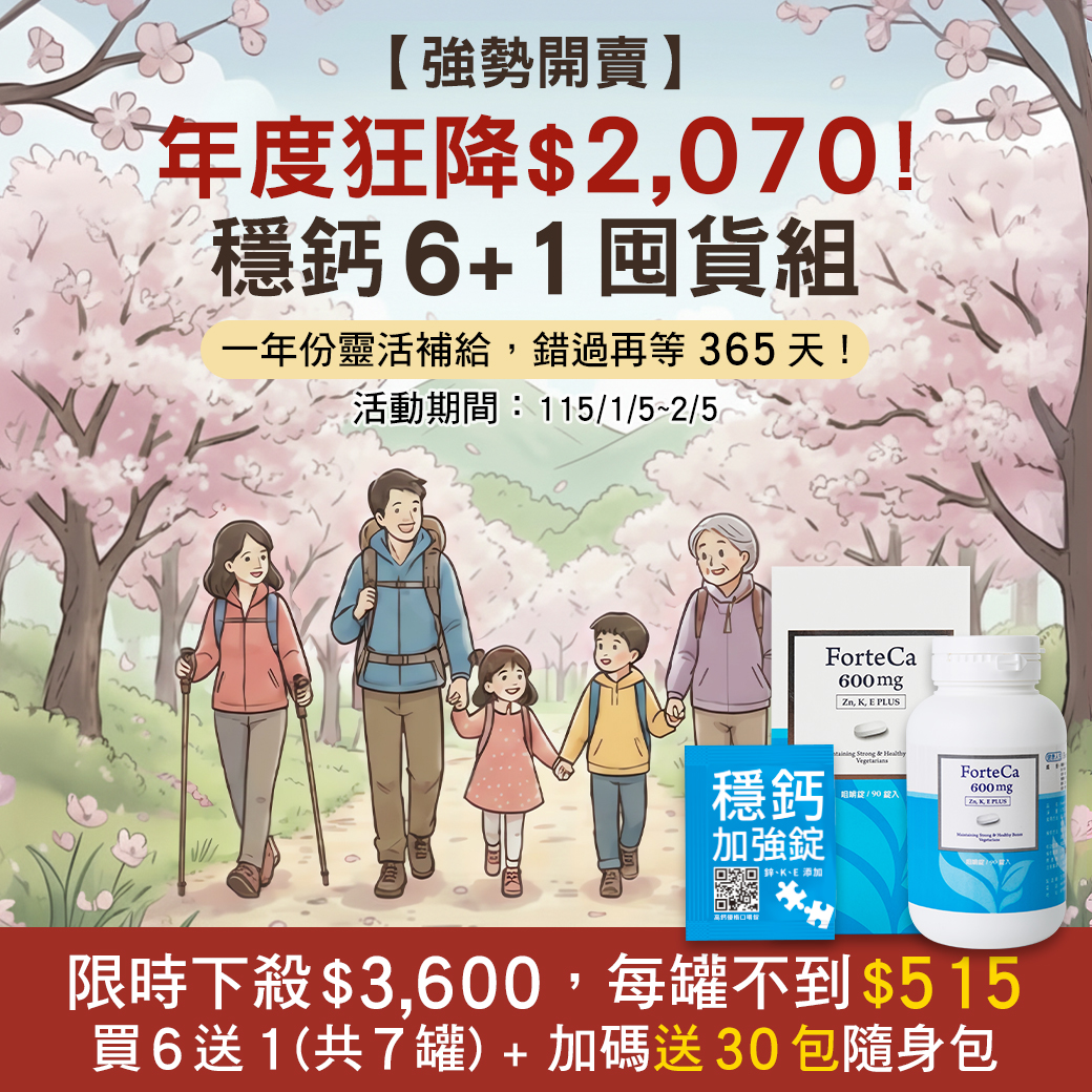 | 新春優惠【穩鈣買6送1】再送30天份隨身包 | $5,670 / 會員$3,600 | 數量 | |